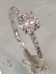 Solitare designers ring with small stones on the side.Price does not include center stone.