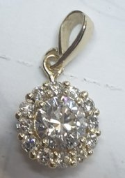 Pendant with center stone and small diamonds around .