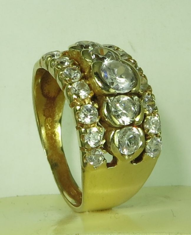 Designers ring with many diamonds.
