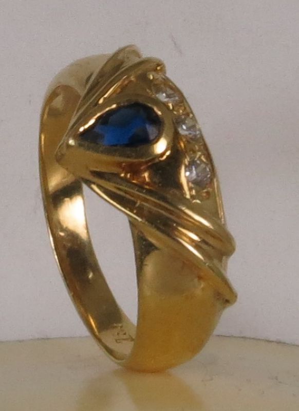 Pear shape ring with color stone and diamonds.