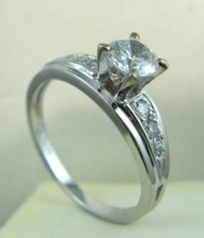 Classic solitare engagement ring with small stones on the side, price without center diamond.