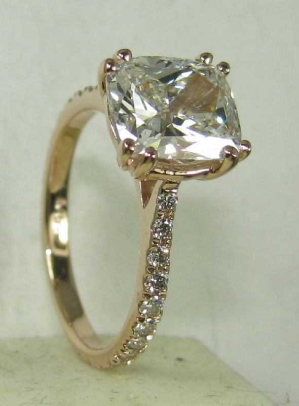 Very delicate engagement diamond ring with large cushin shaped diamond, price without the center stone.