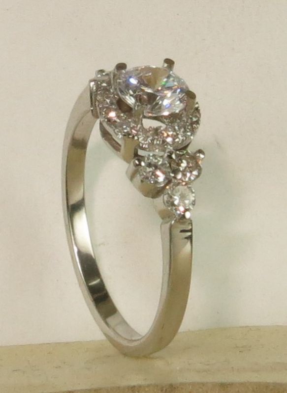Beautiful solitare ring with 6 stones on the side.