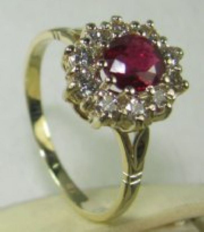 Diana style ring with color stone at the center.
