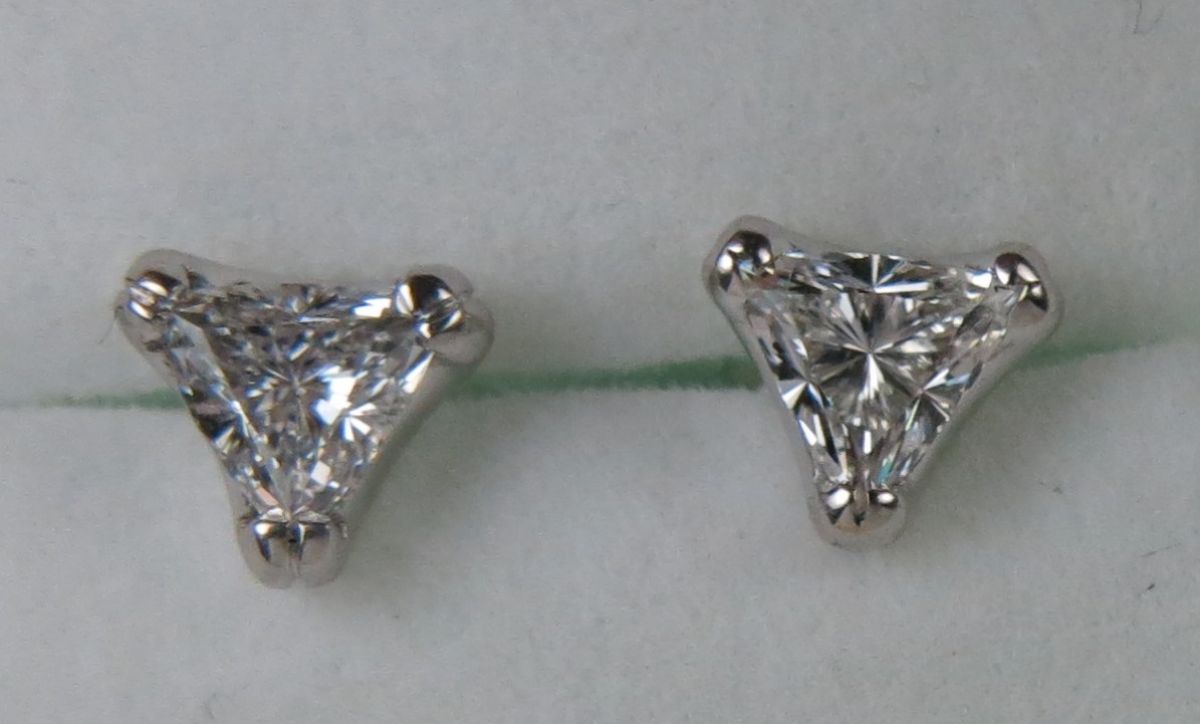 Stud earrings designed for triangle diamonds, price does not include diamonds.